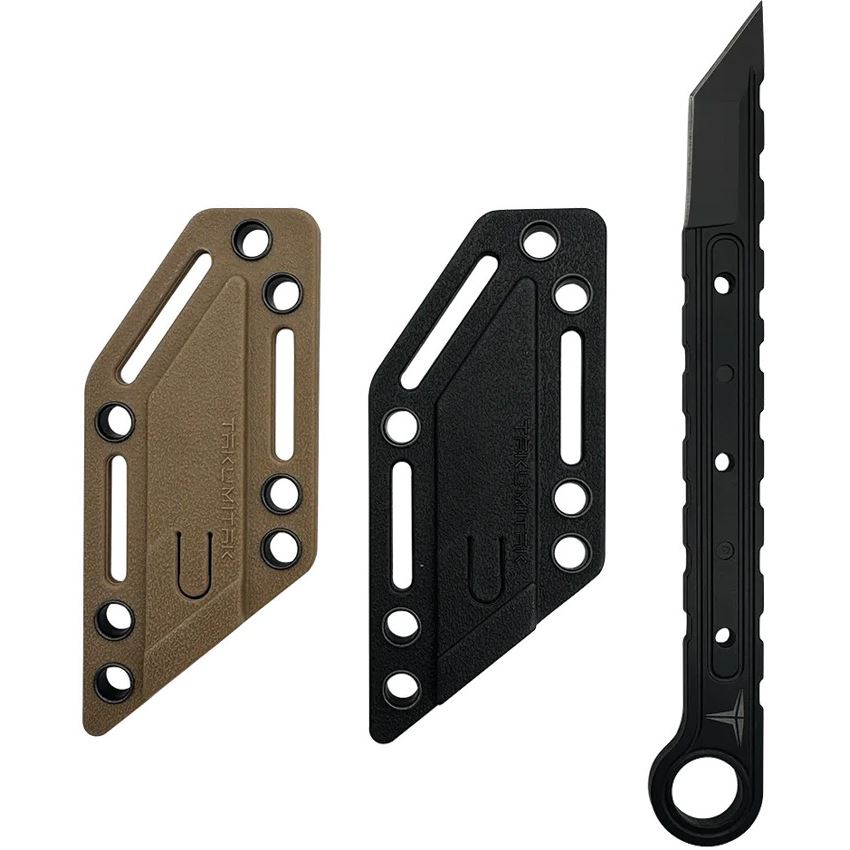 Model/Item/Part Number - TKF3S05. Takumitak Utility Black Oxide Tanto Fixed Blade KnifeBlack FRN Handle. 6.5" (16.51cm) overall. 1.75" (4.45cm) black oxide coated hollow ground 3Cr13 stainless tanto blade. Black FRN handle. Also includes tan belt sheath. Black FRN belt sheath. Boxed. Made in China.