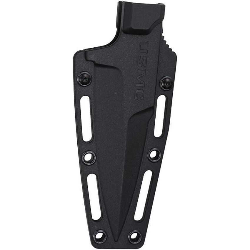 Model/Item/Part Number - USMFIX3005GN. USMC Black Oxide Spear Point Fixed Blade Knife Green Nylon Handle. 9.5" (24.13cm) overall. 4.75" (12.07cm) black oxide coated stainless spear point blade. Green nylon handle. Full, extended tang. Finger ring. Black ABS belt sheath. Boxed. Made in China.