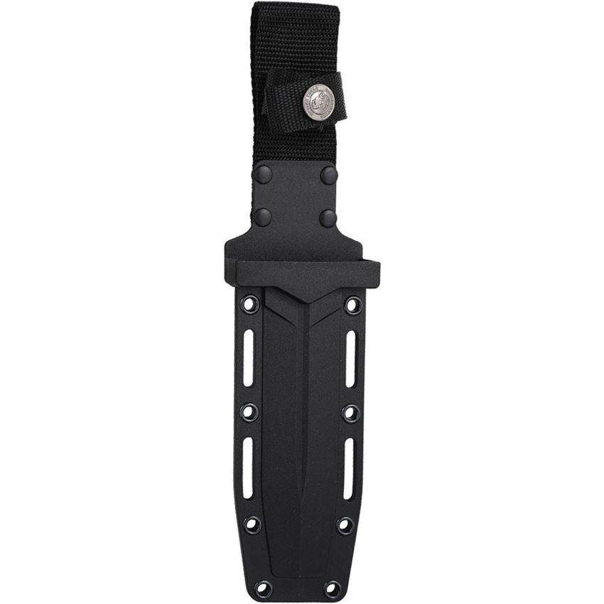 Model/Item/Part Number - USMFIX3010BK. USMC Satin Double Edge Dagger Fixed Blade Knife Black Black Nylon Handle. 9.25" (23.5cm) overall. 4.63" (11.76cm) satin finish double edge 3Cr13MoV stainless dagger blade. Black nylon handle. Full, extended tang. Lanyard hole. Black molded plastic belt sheath. Boxed. Made in China.