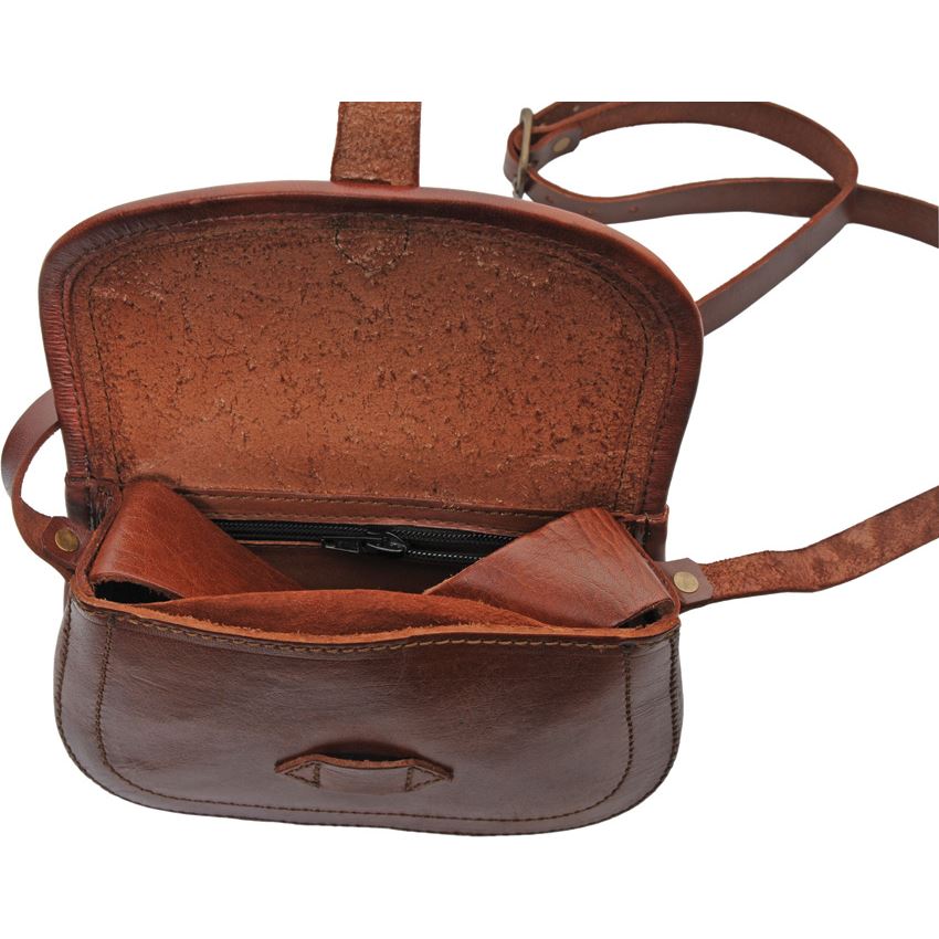 Model/Item/Part Number - PA4470. Pakistan Shoulder Bag Brown Leather. Dimensions: 9" x 7". Stitched design. Leather cross strap as lock. Inner pockets. Leather strap. Leather construction. Color: Brown. Made in Pakistan.