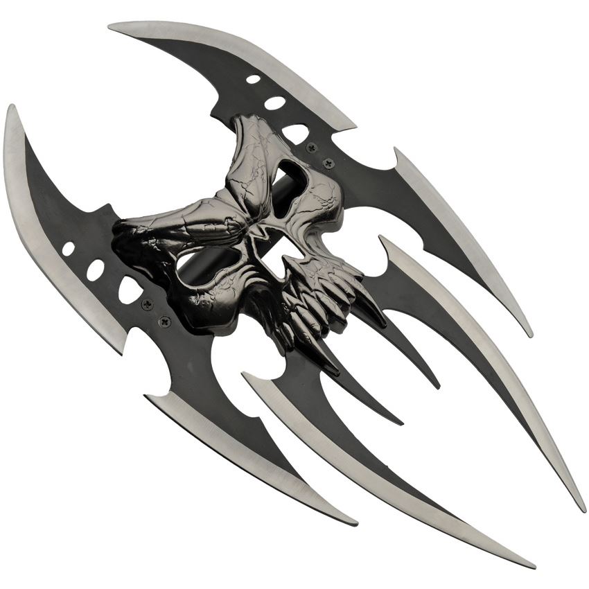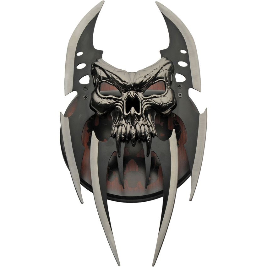 Model/Item/Part Number - CN211614. Rite Edge Vampire Fang With Plaque. Dimensions: 13" x 7.25". Four two-tone stainless blades. Brown wooden wall plaque. Boxed. Made in China.