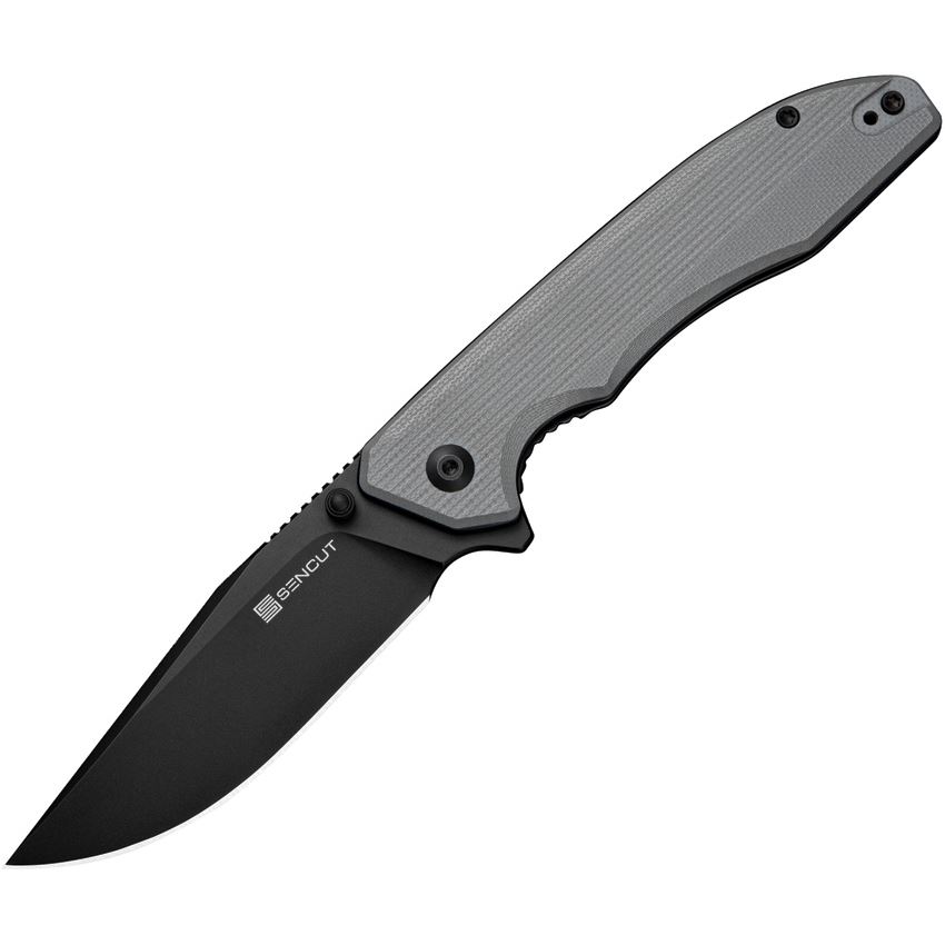 Model/Item/Part Number - S250561. SenCut Sylor Black D2 Tool Clip Point Linerlock Knife Gray G10 Handle. 4.63" (11.76cm) closed. 3.38" (8.59cm) black finish D2 tool steel clip point blade. Gray G10 handle. Extended tang. Thumb stud. Pocket clip. Black nylon zippered storage case. Boxed. Made in China.