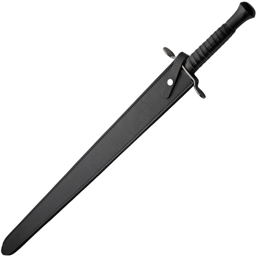 Model/Item/Part Number - PA901160. Pakistan Gothic Scale Sword. 37.25" (94.62cm) overall. 29.75" (75.57cm) satin finish spring steel blade. Black leather wrapped handle. Steel guard. Black leather belt sheath. Boxed. Made in Pakistan.