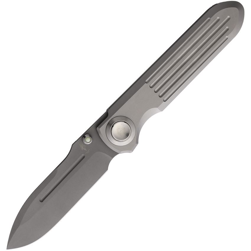 Terrain 365 10528 Invictus Spear Point Button Lock Knife Gray Titanium Handle