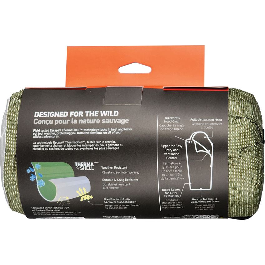 Model/Item/Part Number - AD01401236. Adventure Medical SOL Escape Bivvy with Hood. Dimensions: 84" x 31". 70% heat reflective. Weather resistant ThermaShell. Breathable. Quick-draw hood cinch. Zipper for easy entry. Taped seams. Roomy toe box. Fully articulated hood. Hang packaged. Made in USA.