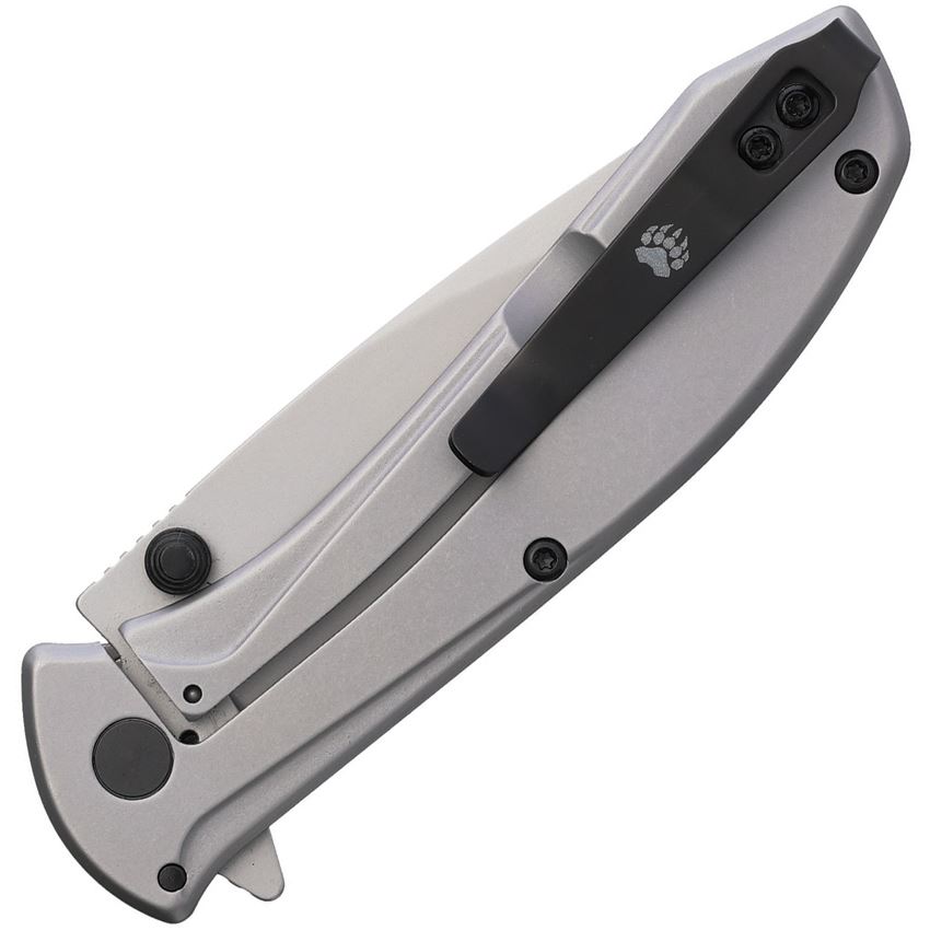 Model/Item/Part Number - BCU112AUSA. Bear & Son Framelock Knife Assist Open 250th. Assisted opening. 4.13" (10.49cm) closed. 2.88" (7.32cm) bead blast finish stainless drop point blade. American flag pattern stainless handle with bead blast finish stainless back handle. Blade etching. Thumb stud. Extended tang. Pocket clip. Boxed. Made in USA.