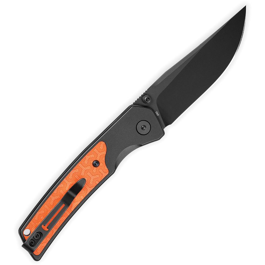 Model/Item/Part Number - BTKMK16D. Bestech Icebreaker Button Lock Blk/Org. 4.25" (10.8cm) closed. 3.13" (7.95cm) black PVD coated D2 tool steel drop point blade. Black matte finish aluminum handle with orange G10 inlay. Thumb stud. Lanyard hole. Pocket clip. Boxed. Made in China.
