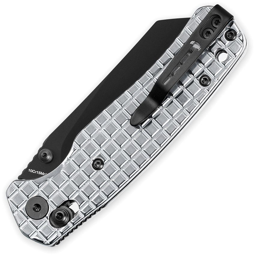 Model/Item/Part Number - BTKMK06S6. Bestech Cicada's Wing B-Lock Frag. 4" (10.16cm) closed. 3.13" (7.95cm) black PVD coated 10Cr15CoMoV stainless reverse tanto blade. Polished frag pattern stainless handle. Thumb stud. Lanyard hole. Pocket clip. Boxed. Made in China.