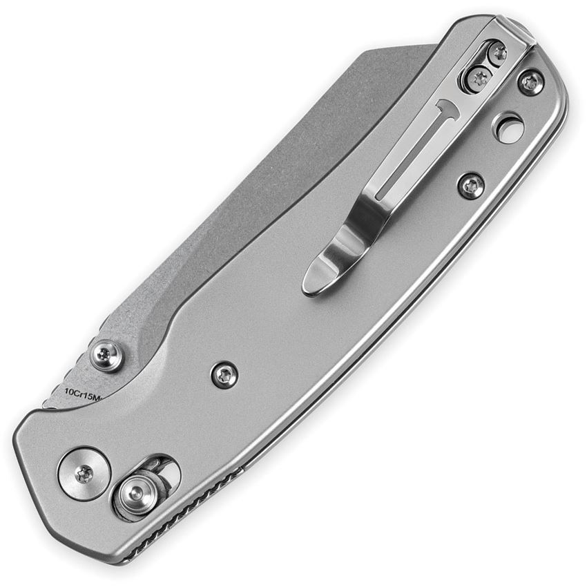 Model/Item/Part Number - BTKMK06S7. Bestech Cicada's Wing B-Lock. 4" (10.16cm) closed. 3.13" (7.95cm) stonewash finish 10Cr15CoMoV stainless reverse tanto blade. Bead blast finish stainless handle. Thumb stud. Lanyard hole. Pocket clip. Boxed. Made in China.