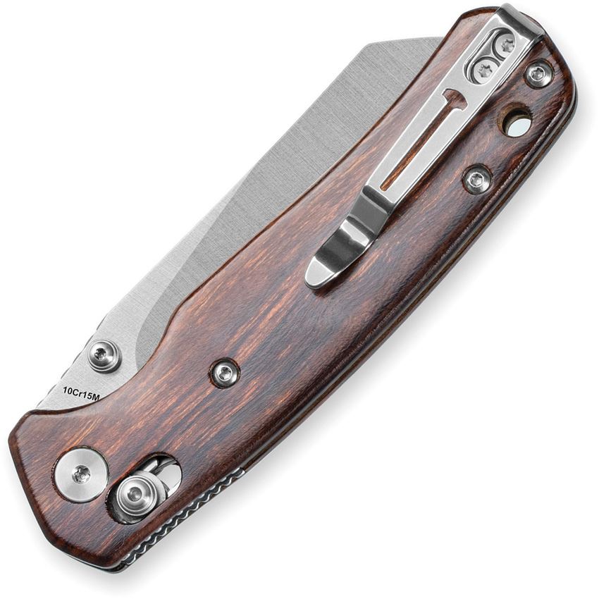 Model/Item/Part Number - BTKMK06W3. Bestech Cicada's Wing B-Lock Ironwood. 4" (10.16cm) closed. 3.13" (7.95cm) satin finish 10Cr15CoMoV stainless reverse tanto blade. Ironwood handle. Thumb stud. Lanyard hole. Pocket clip. Boxed. Made in China.