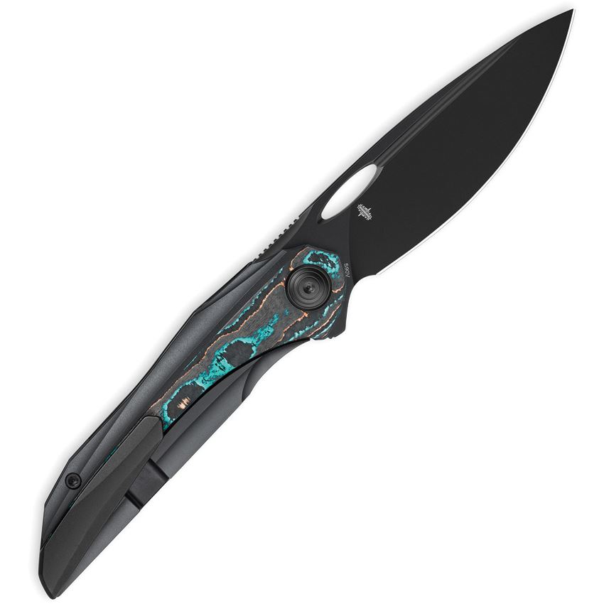 Model/Item/Part Number - BTKT2601D. Bestech SENU Framelock Knife Ti/Camo Carbon. 4.5" (11.43cm) closed. 3.5" (8.89cm) black PVD coated S90V steel drop point blade. Black PVD coated titanium handle with camo carbon fiber inlay. Extended tang. Thumb pull. Pocket clip. Black nylon pouch. Boxed. Made in China.