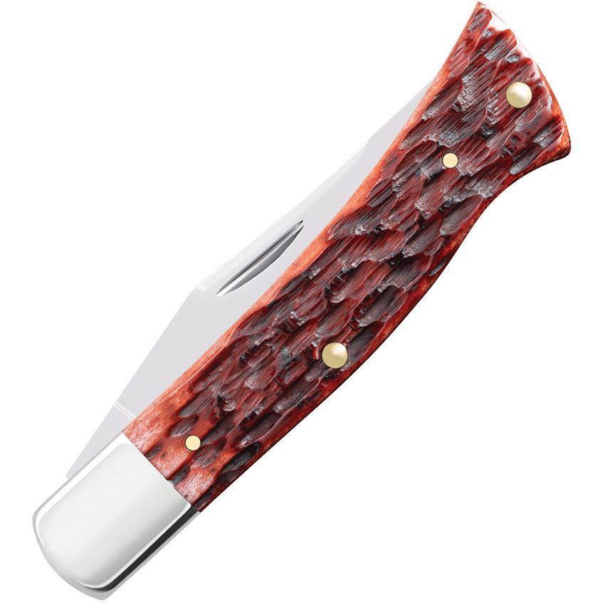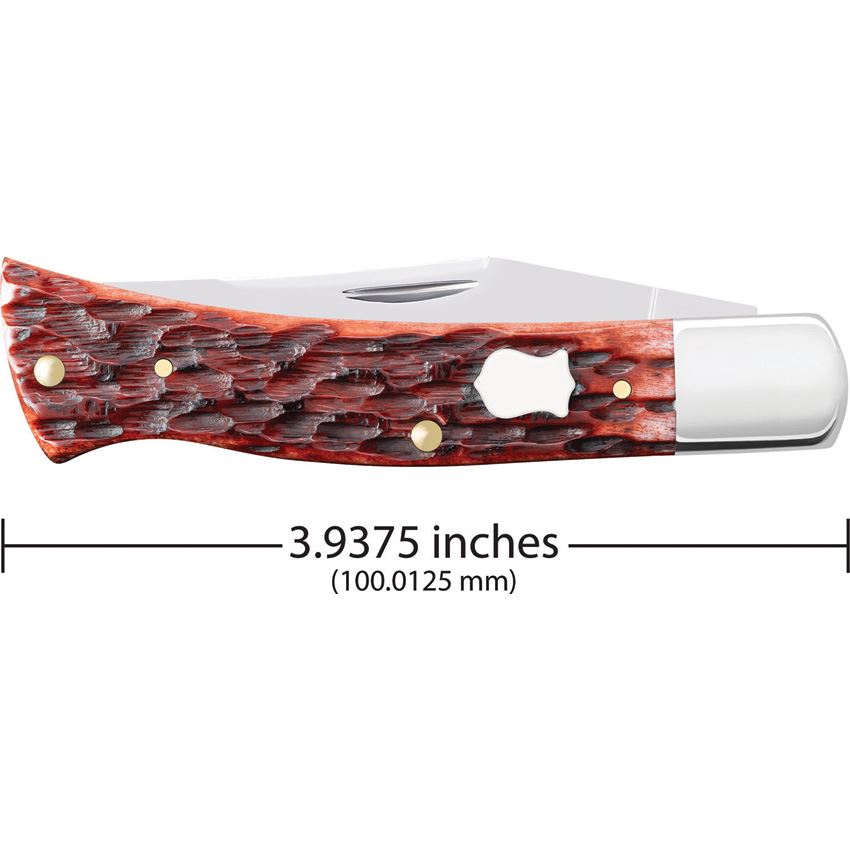 Model/Item/Part Number - CA44250. Case XX Axe Handle Mahogany Bone. BR61135 SS pattern. 4" (10.16cm) closed. Mirror finish stainless clip blade. Mahogany Pocket Worn jigged bone handle. Nickel silver bolster(s). Inlay shield. Boxed. Made in USA.