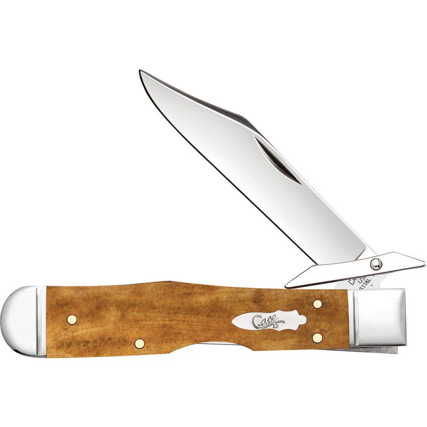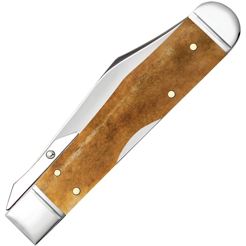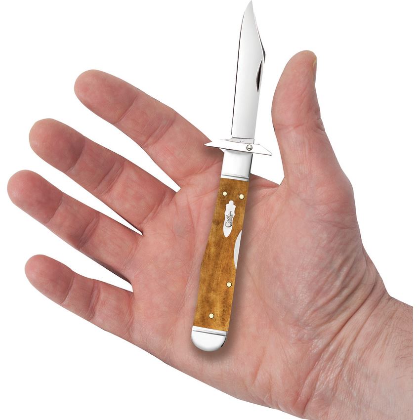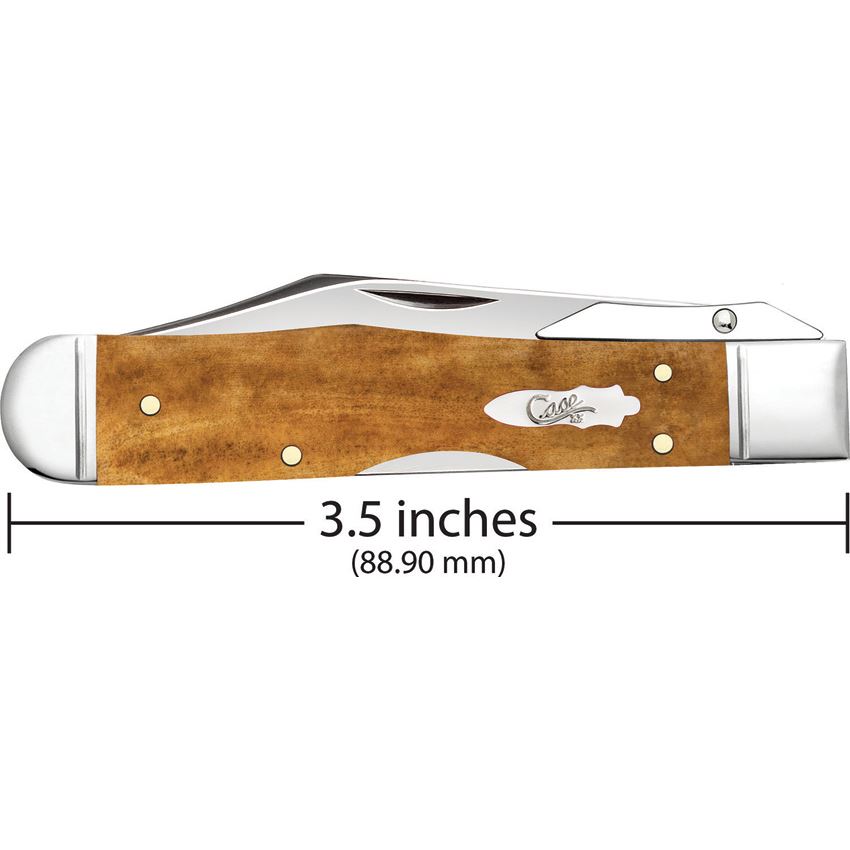 Model/Item/Part Number - CA58214. Case XX Cheetah Cub Lockback. 611 1/2L SS pattern. 3.5" (8.89cm) closed. Mirror finish stainless locking clip blade with swing guard. Antique smooth bone handle. Nickel silver bolster(s). Inlay shield. Boxed. Made in USA.