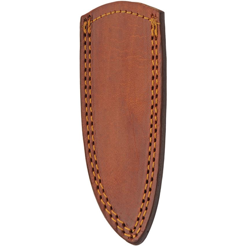 Model/Item/Part Number - DM1415. Damascus Sharp Tooth Bone Knife. 7.25" (18.42cm) overall. 3.25" (8.26cm) Damascus steel blade. Natural smooth bone handle. Full tang. Lanyard hole. Turquoise color spacer. Brown leather belt sheath. Boxed. Made in Pakistan.