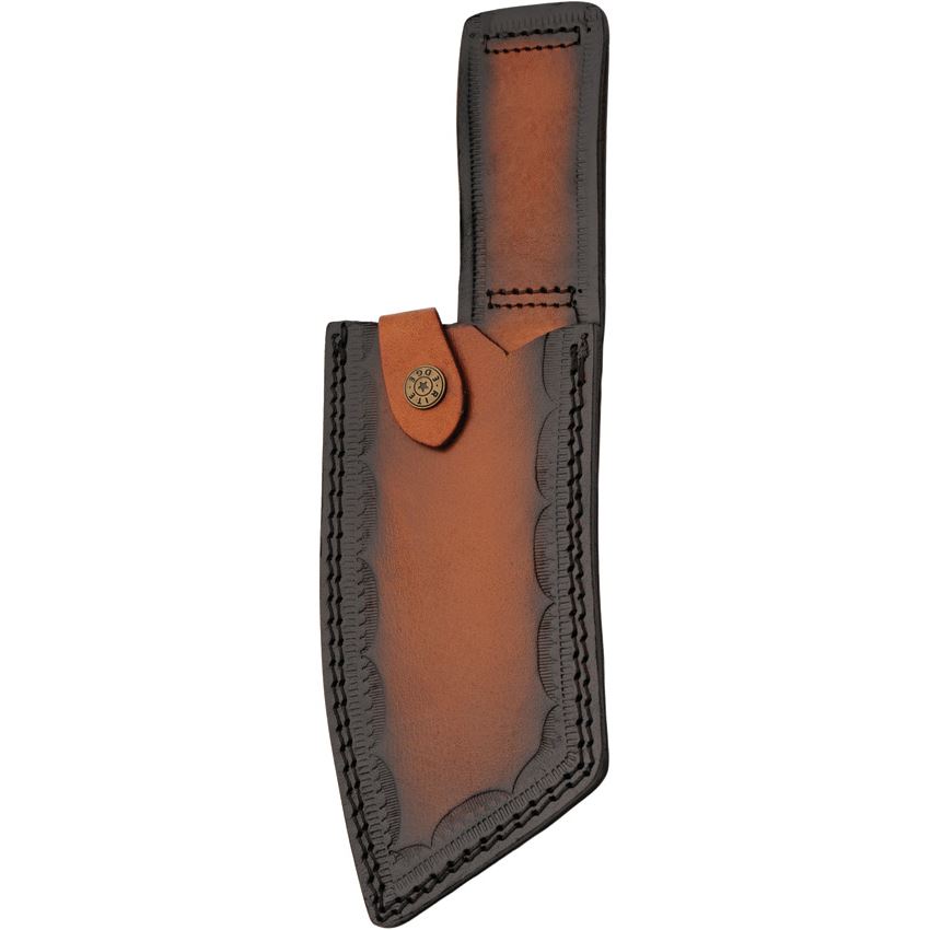 Model/Item/Part Number - DM1436. Damascus Blue Crystal Cleaver. 12" (30.48cm) overall. 7" (17.78cm) Damascus steel cleaver style blade. Black and blue resin handle. Full tang. Brown leather belt sheath. Boxed. Made in Pakistan.