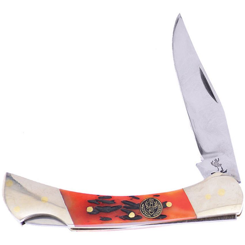 Model/Item/Part Number - FWT547OCB. Frost Whitetail Lockback OCB. 3.5" (8.89cm) closed. 2.5" (6.35cm) mirror finish stainless clip point blade. Orange camo bone handle. Nickel silver bolster(s). Inlay shield. Boxed. Made in Pakistan.