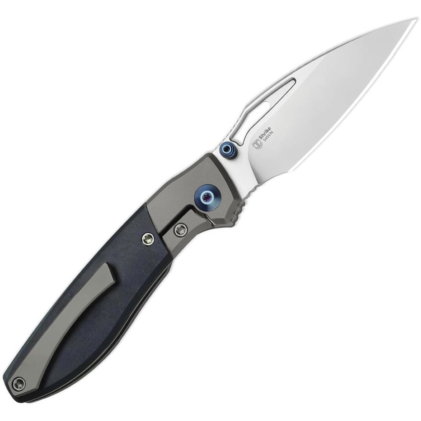 Model/Item/Part Number - KI3746A3. Kizer Shrike Framelock Knife Richlite. 3.63" (9.22cm) closed. 2.75" (6.99cm) stonewash finish S45VN stainless drop point blade. Dark gray titanium handle with Richlite inlay. Thumb stud. Thumb pull. Pocket clip. Boxed. Made in China.
