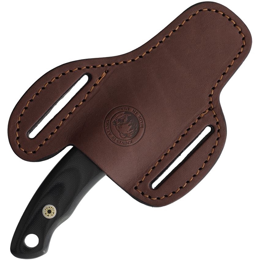 Model/Item/Part Number - KOA00076FG. Knives Of Alaska Bull Cutter Fixed Blade Knife BlkG10. 7.25" (18.42cm) overall. 2.75" (6.99cm) bead blast finish D2 tool steel sheepsfoot blade. Black G10 handle. Full tang. Lanyard hole. Brown leather belt sheath. Boxed. Made in USA.