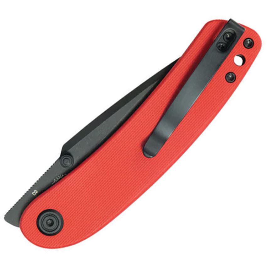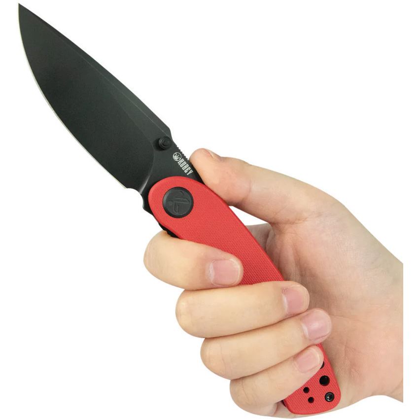 Model/Item/Part Number - KUB344P. Kubey Momentum Linerlock Knife Red. 4.5" (11.43cm) closed. 3.5" (8.89cm) BlackWash finish D2 tool steel drop point blade. Red G10 handle. Extended tang. Lanyard hole. Pocket clip. Thumb stud. Boxed. Made in China.