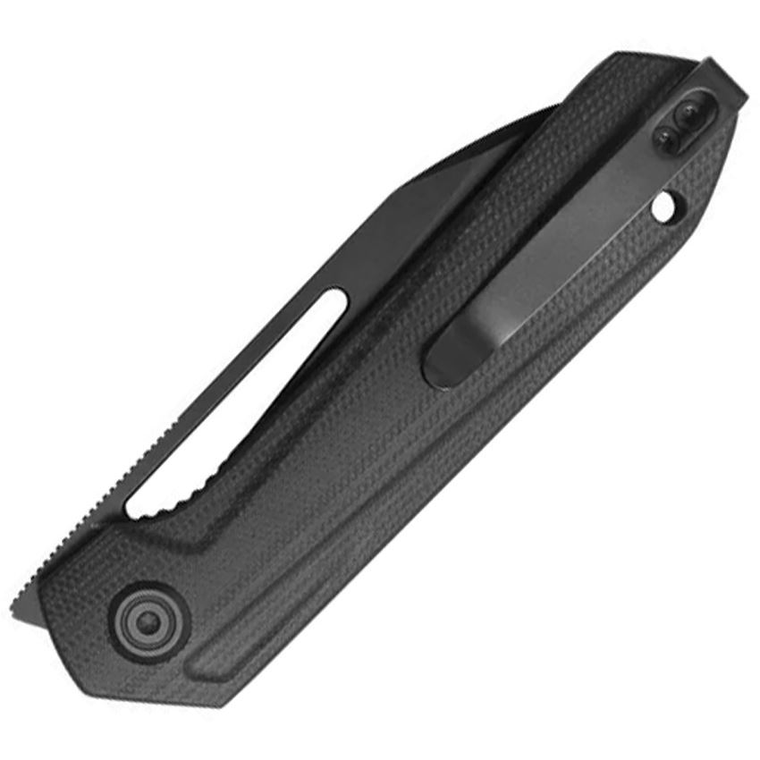 Model/Item/Part Number - KUB321X. Kubey Royal Linerlock Knife Blackout. 4.25" (10.8cm) closed. 3" (7.62cm) black stonewash finish 14C28N Sandvik stainless drop point blade. Black G10 handle. Extended tang. Thumb pull. Lanyard hole. Pocket clip. Boxed. Made in China.