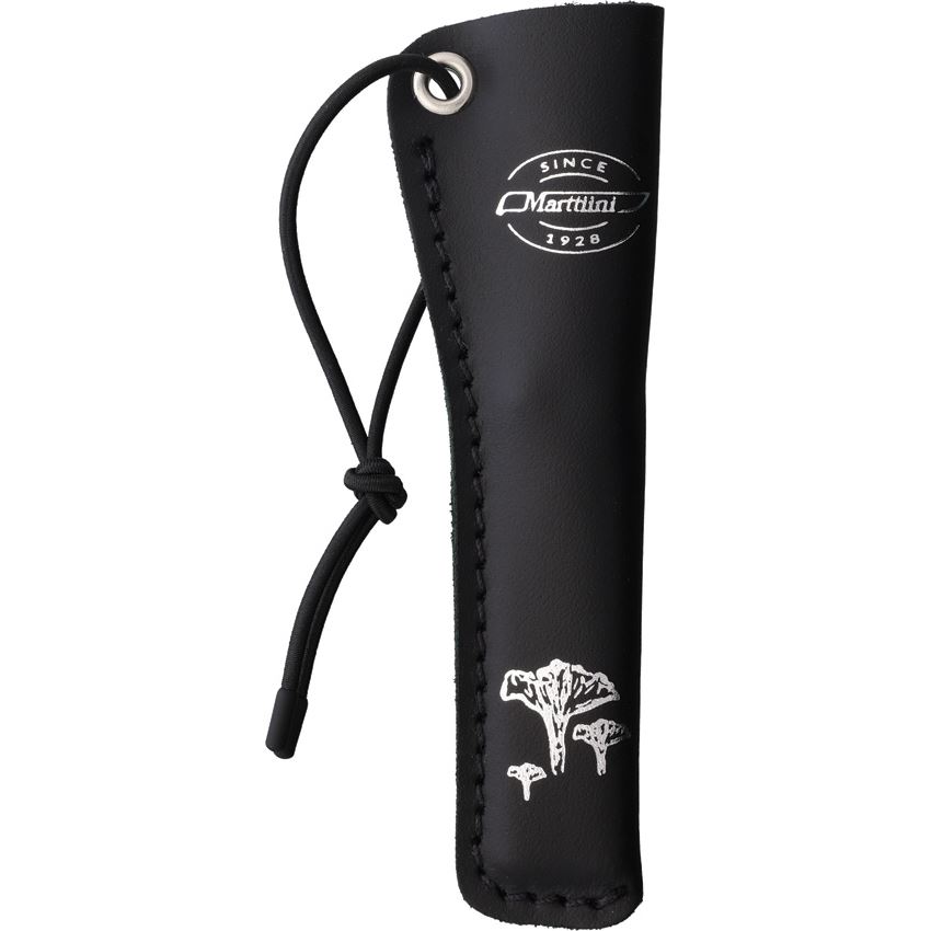 Model/Item/Part Number - MN709015C. Marttiini Mushroom Knife Orange. 6.25" (15.88cm) overall. 2" (5.08cm) satin finish stainless blade. Orange plastic handle. Nylon brush end. Black leather sheath. Boxed with hanging tab. Made in Finland.