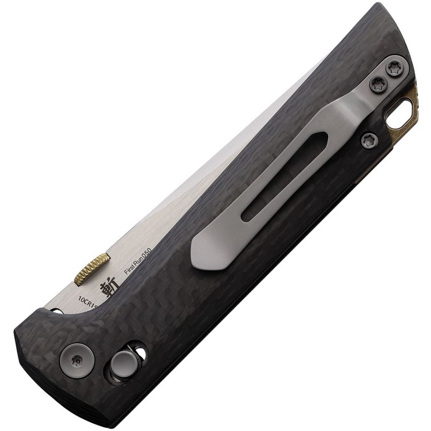 Model/Item/Part Number - NMB2418CF5. North Mountain Chop 2 Crossbar Lock Knife CF. 4.5" (11.43cm) closed. 3.5" (8.89cm) blade. Carbon fiber handle. Thumb disk. Lanyard hole. Pocket clip. Forged 5-Layer Copper-Clad steel tanto blade. Black molded plastic storage case. Boxed. Made in China.