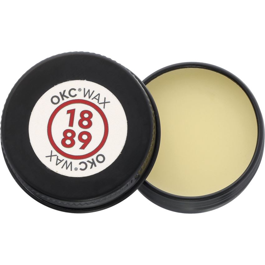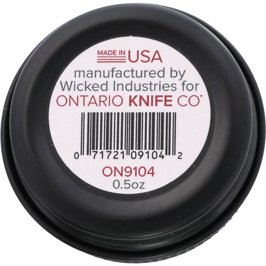 Model/Item/Part Number - ON9104. Ontario OKC Wax 0.5 oz. 0.5oz Beeswax based. Food safe, organic, and vegan knife protectant that is perfect for more than just knives. It is great for wood, micarta, plastic, leather, steel, or epoxy based materials. Manufactured by Wicked Industries. Comes in metal tin. Made in USA.
