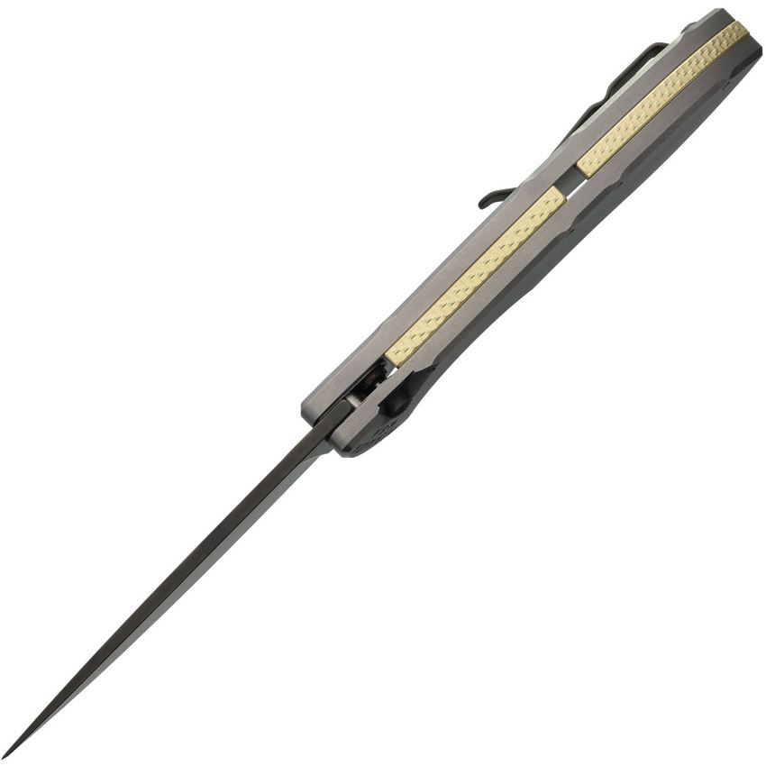 Model/Item/Part Number - PKCP27TT. Piranha Auto Fusion Buttonlock Blk Gry. Automatic opening. 4.63" (11.76cm) closed. 3.5" (8.89cm) black coated CPM MagnaCut stainless blade. Gray titanium handle. Pocket clip. Boxed. Made in USA.