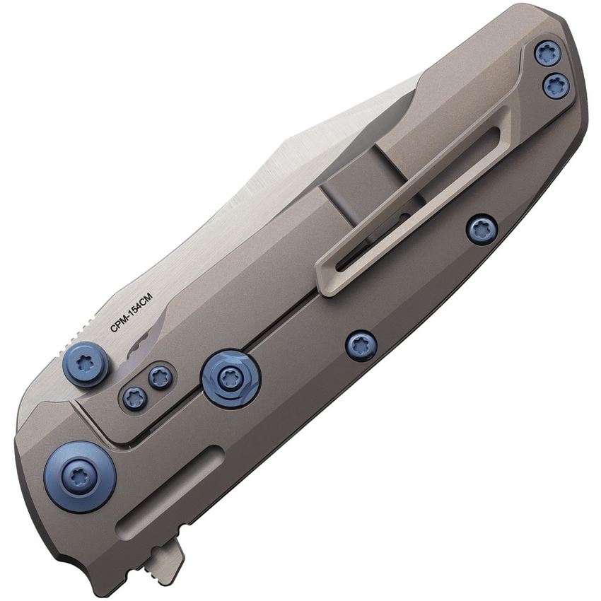 Model/Item/Part Number - REA228. Reate 9DV2 Framelock Knife Lava Fat CF. 4.63" (11.76cm) closed. 3.5" (8.89cm) satin finish CPM-154 stainless clip point blade. Lava Flow Fat carbon fiber handle with gray titanium back handle. Extended tang. Thumb stud. Pocket clip. Boxed. Made in China.