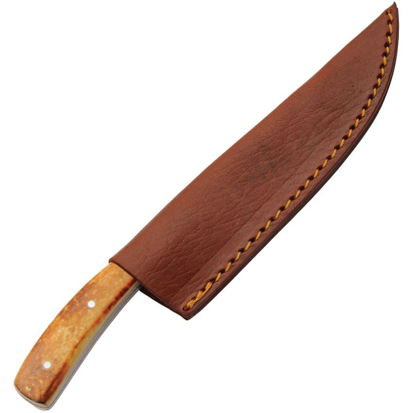 Model/Item/Part Number - PA203547BB. Rite Edge Trailing Point Fixed Blade Knife. 7.75" (19.69cm) overall. 4.25" (10.8cm) satin finish stainless trailing point blade. Burnt smooth bone handle. Full tang. Brown leather belt sheath. Boxed. Made in Pakistan.