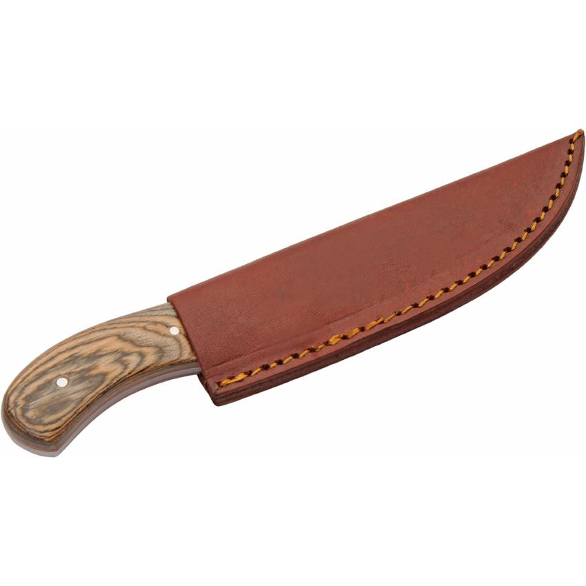 Model/Item/Part Number - PA203548WD. Rite Edge Rugged Wood Hunter. 7.5" (19.05cm) overall. 3.5" (8.89cm) satin finish stainless skinner blade. Brown wood handle. Stainless bolster(s). Full tang. Brown leather belt sheath. Boxed. Made in pakistan.