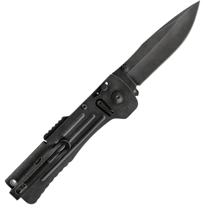 Model/Item/Part Number - SOGSJ42CP. SOG Slim Jim 2.0 Lockback Assist Open BSW. Assisted opening. 4.25" (10.8cm) closed. 3.13" (7.95cm) black stonewash finish AUS-8 stainless clip point blade. Black stonewash finish 420HC stainless handle. Thumb stud. Pocket clip. Lockback safety switch. Hang packaged. Made in Taiwan.