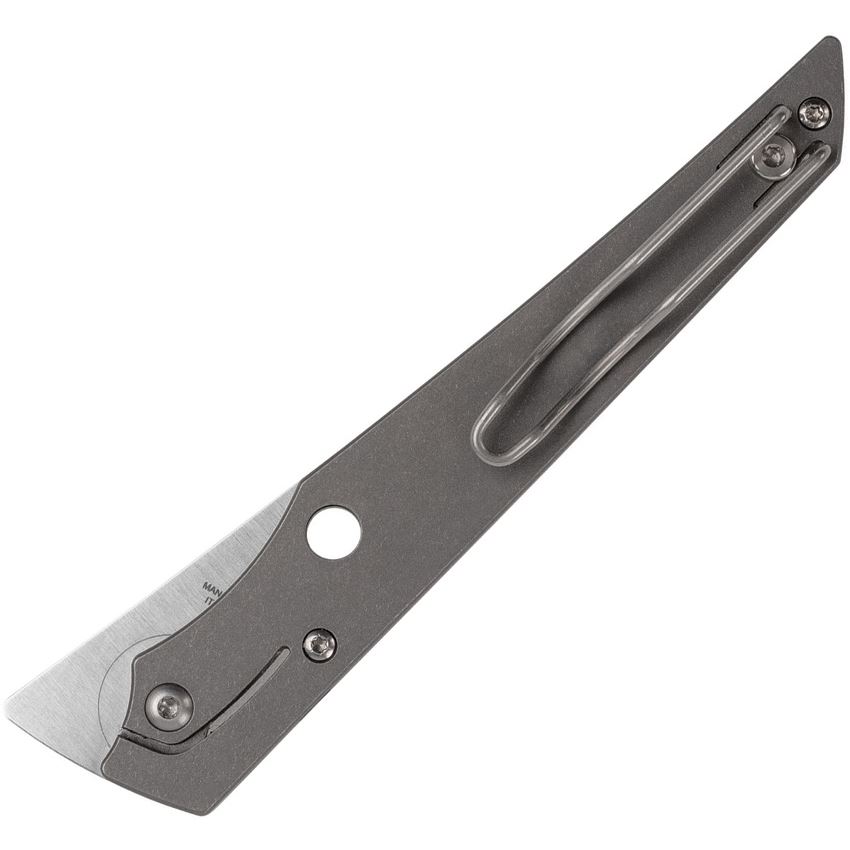 Model/Item/Part Number - SC273TIP. Spyderco Cobol SlipIt. 4.75" (12.07cm) closed. 3.63" (9.22cm) satin finish saber ground Bohler M390 stainless blade. Gray titanium handle. Thumb pull. Pocket clip. Boxed. Made in Italy.