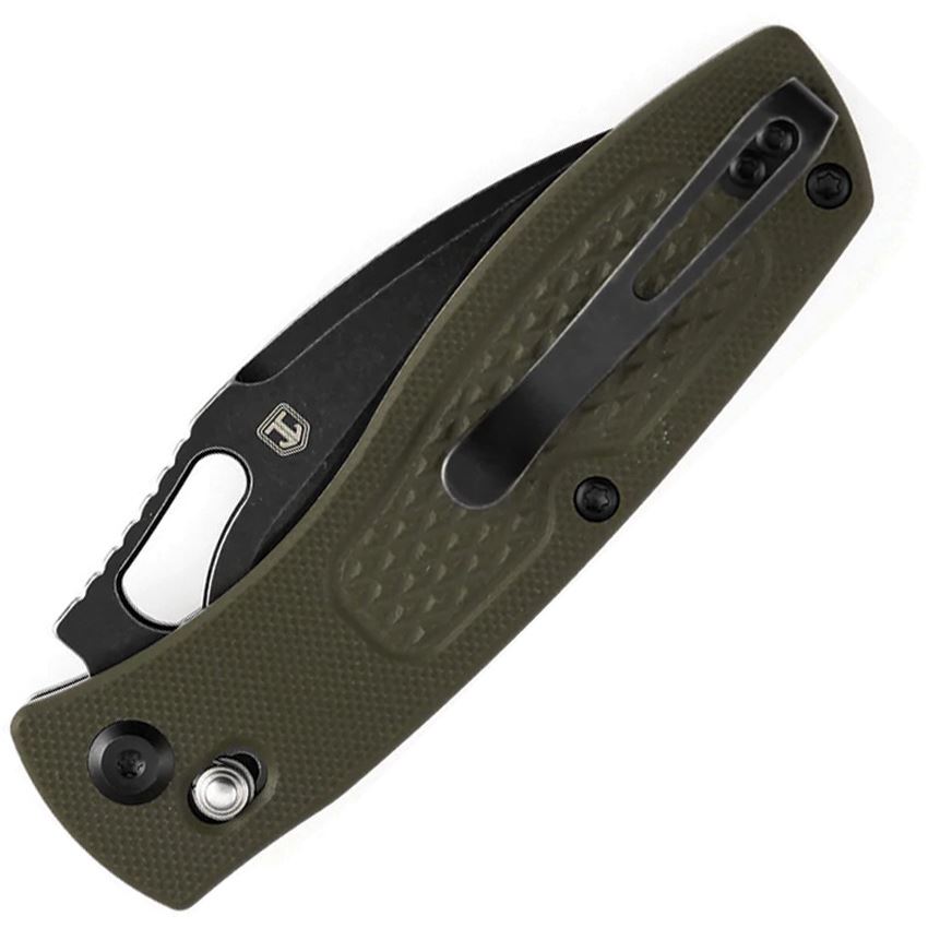 Model/Item/Part Number - B2124V5. Tenable Heron Crossbar Lock Knife Grn G10. 4" (10.16cm) closed. 3.13" (7.95cm) BlackWash finish Nitro V steel blade. Olive G10 handle. Thumb pull. Pocket clip. Diamond pattern handle. Boxed. Made in China.