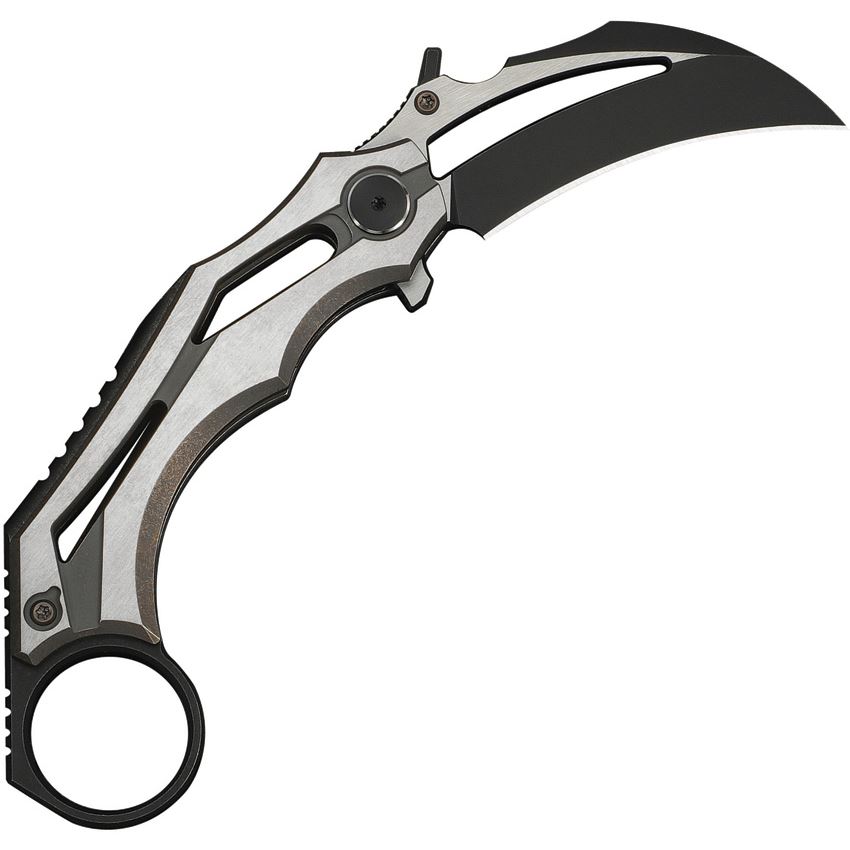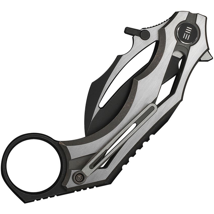 Model/Item/Part Number - WE240703. We Cryonix Nested Linerlock Knife Brz. 4.63" (11.76cm) closed. 2" (5.08cm) black stonewash and satin finish Bohler M390 stainless hawkbill blade. Bronze and satin titanium handle. Extended tang. Finger ring. Thumb disk. Pocket clip. Black nylon zippered storage case. Boxed. Made in China.
